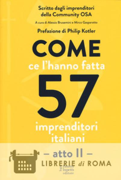 Dopo "Come ce l'hanno fatta 51 imprenditori italiani", i cavalieri di OSA, l'esclusiva community dell'Italia che fa impresa, presentano il secondo volume della collana scritta dagli imprenditori per gli imprenditori. "Come ce l'hanno fatta 57 imprenditori italiani. Atto II" raccoglie le storie dei membri OSA e i segreti del loro successo, con lo scopo di divulgare una cultura d'impresa pratica, condivisibile ed efficace in una fase di grandi e rapidi cambiamenti. In ogni capitolo l'esperienza personale e le emozioni dell'autore si intrecciano con le difficoltà e i successi della sua impresa. 57 storie emozionanti e illuminanti arricchite da esempi ed esperienze concrete che mirano a ispirare gli imprenditori di oggi e di domani aiutandoli ad allargare la propria visione e raggiungere i propri obiettivi. Prefazione di Philip Kotler.