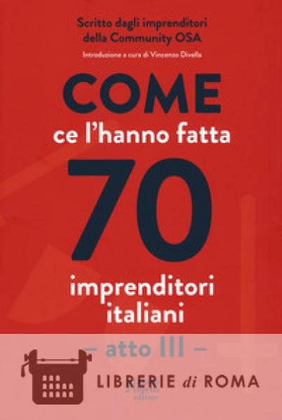 Qual è il metodo migliore per crescere e avere successo, per un imprenditore? Imparare dagli errori. Ma per migliorarti e acquisire nuove competenze non è necessario farlo sulla tua pelle. Leggendo le storie di successo raccolte in questo libro, scoprirai quali strategie hanno messo in atto altri imprenditori per risolvere i loro problemi. Dopo il successo editoriale dei primi due volumi dell'unica collana scritta dagli imprenditori per gli imprenditori, i membri di OSA Community presentano il terzo atto dell'appuntamento editoriale più atteso nel mondo dell'imprenditoria. "Come ce l'hanno fatta 70 imprenditori italiani. Atto III" raccoglie le storie dei membri OSA, l'esclusiva community dell'Italia che fa impresa. Attraverso racconti di vita emozionanti, arricchiti da esempi ed esperienze concrete, ogni capitolo affronta tematiche quali la strategia d'impresa, lo sviluppo della leadership, il marketing, l'innovazione, la crescita personale dell'imprenditore e l'intelligenza finanziaria. Campi nei quali ognuno degli autori è considerato un'eccellenza. Lo scopo? Ispirare gli imprenditori di oggi e di domani aiutandoli ad allargare la propria visione e raggiungere i propri obiettivi.