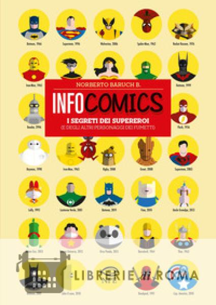 Una vera e propria enciclopedia del nerd. Tutti i personaggi più famosi dei fumetti e dell'animazione in oltre 100 coloratissime infografiche. Da Batman a Thor, da Wonder Woman a Corto Maltese. Tutto quello che c'è da sapere sulle loro origini, sui loro creatori e numerose curiosità inedite. L'autore, giornalista e illustratore, ha sperimentato una nuova forma di comunicazione, l'infografica d'autore, per raccontare i miti della cultura pop in un modo tanto rivoluzionario e approfondito quanto divertente. L'intento del volume, oltre a quello di tracciare i profili di supereroi e personaggi più amati dei comics, è di svelarne gli aspetti più reconditi, quelli che probabilmente durante l'infanzia o l'adolescenza ci sono sfuggiti. Sapevate, ad esempio per la creazione del mantello di Batman si ispirarono all'invenzione di Leonardo Da Vinci? E che Popeye deriva da pop e eye, letteralmente "occhio sporgente"? Questo e molto altro, nel volume "Infocomics - I segreti dei Supereroi (e di altri personaggi dei fumetti)".