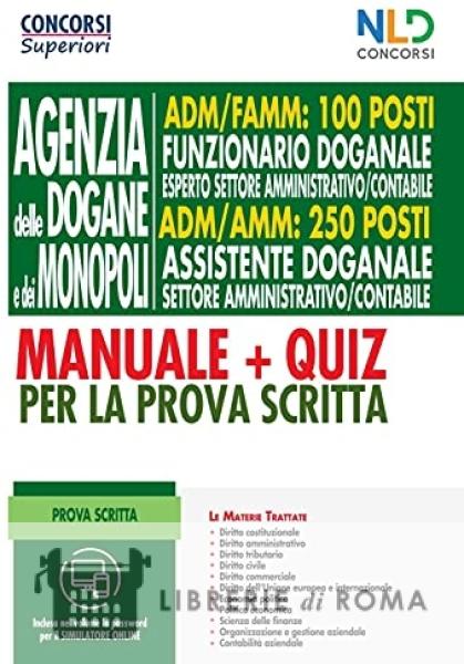 In data 5 ottobre 2020 sono stati pubblicati due bandi di concorso per l'assunzione di complessive 1226 unità di personale, di cui 460 per diplomati e 766 per laureati, da inquadrare presso gli uffici centrali e periferici dell'Agenzia delle dogane e dei monopoli. La procedura di selezione del profilo ADM/FAMM funzionario doganale - esperto nel settore amministrativo-contabile (100 posti) e del profilo ADM/AMM assistente doganale nel settore amministrativo tributario (250 posti) consiste nelle seguenti prove: a) una prova preselettiva; b) due prove scritte; c) una prova orale. Le prove scritte sono articolate nel seguente modo: - un questionario a risposta multipla su tutte o alcune delle seguenti materie: diritto costituzionale, diritto amministrativo, diritto tributario, diritto civile (limitatamente alla disciplina contenuta nel Libro IV - delle obbligazioni - del codice civile), diritto commerciale (solo per il profilo ADM/FAMM), diritto dell'Unione europea e internazionale, economia politica (solo per il profilo ADM/FAMM), politica economica (solo per il profilo ADM/FAMM), scienza delle finanze (solo per il profilo ADM/FAMM), organizzazione e gestione aziendale, contabilità aziendale; - due quesiti a risposta sintetica (massimo 20 righe), anche di carattere interdisciplinare su tutte o alcune delle suddette materie. Il presente volume costituisce un valido ed efficace strumento per la preparazione alla prova scritta, contenendo una sintetica ma dettagliata trattazione teorica delle suddette materie, oggetto della prima prova scritta, accompagnata da una accurata selezione dei quesiti a risposta multipla, alcuni dei quali commentati. Completa il volume l'innovativo simulatore online con il quale è possibile esercitarsi con batterie di domande a risposta multipla, aventi ad oggetto ciascuna delle materie oggetto del volume, consultabile con apposita password presente nel retro del volume.