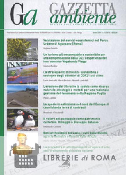 Aree protette. Potenzialità ecologiche dei "boschi urbani": i servizi ecosistemici Valutazione dei servizi ecosistemici nel Parco Urbano di Aguzzano. Sviluppo sostenibile Un turismo più responsabile e sostenibile per una compensazione della CO2. Il "viaggio" come tutela di cultura, ambiente e tradizioni: l'esperienza di Vagabondo Viaggi. La strategia dell'Unione europea in materia di finanza sostenibile. La Green Finance per realizzare gli obiettivi di COP21 sul clima. Conservazione delle Specie Viaggio tra le specie in estinzione nel nord dell'Europa Islanda, terra di contrasti. Tutela dei litorali. L'erosione dei litorali e la sabbia come risorsa naturale. Strategie e metodi per una gestione sostenibile dell'erosione delle spiagge nella Regione Puglia. Beni culturali. Il Paesaggio come bene culturale. Il valore del paesaggio come patrimonio culturale. Omaggio a G. Galasso Beni archeologici del Lazio: i culti delle divinità agrarie. Il Santuario di Demetra e Kore Il culto delle due dee e il sacrificio del maialino. Il complesso esercizio dell'attribuzione di un'opera d'arte Garanzia e rimedi nell'ordinamento giuridico italiano per la paternità delle opere d'arte.