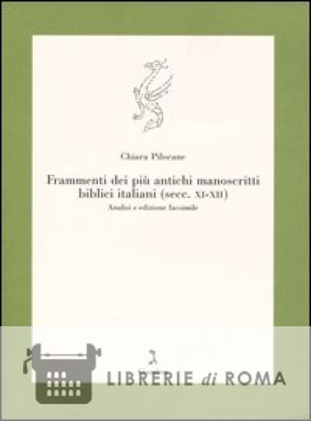 Frutto di una rielaborazione e di un ampliamento della tesi di laurea dell'autrice, la monografia ha come oggetto i frammenti pergamenacei dei quattro manoscritti biblici italiani più antichi fino ad oggi rinvenuti (secc. XI-XII): i frammenti sono stati ritrovati, nell'ambito del "Progetto Ghenizà italiana", dispersi fra Emilia Romagna e Umbria, dove furono riutilizzati negli archivi come copertine e rilegature di registri notarili. I frammenti rinvenuti ci restituiscono una sessantina di pagine, la maggior parte delle quali appartenenti ad un solo codice che, proprio in virtù del fatto di essere il più ampiamente documentato dai fogli recuperati, costituisce il manoscritto guida per l'analisi filologica e linguistica.