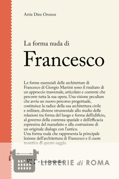 Le forme essenziali delle architetture di Francesco di Giorgio Martini sono il risultato di un approccio trasversale, articolato e coerente che percorre tutta la sua opera. Una visione peculiare che avvia un nuovo percorso progettuale, costituisce la radice della sua architettura civile e militare, diviene strumentale allo studio delle relazioni tra forma del luogo e forma dell'edificio, al governo della coerenza spaziale e dell'efficacia espressiva del manufatto e alla costruzione di un originale dialogo con l'antico. Una forma nuda che rappresenta la principale lezione dell'architettura di Francesco e il cuore teoretico di questo saggio.