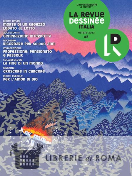 Il numero 5 de La Revue Dessinée Italia, la prima rivista di giornalismo a fumetti in Italia. Indipendente e senza pubblicità. Copertina di Jean Mallard. In questo numero: Diritti umani Morte di un ragazzo legato al letto di Annalisa Camilli & Alex Diotto; Nucleare Ricordare per 50.000 anni di Fabio Deotto & Niccolò Cedeno; Adolescenti La generazione interrotta di Laura Cappon & Eva Rossetti; Immigrazione Professione: pensionato e passeur di Roberta Cavaglià & Francesco Saresin; Collassologia La fine di un mondo di Angela Bolis & Fabrice Erre; Giustizia Crescere in carcere di Alice Facchini & Iris Blasio.