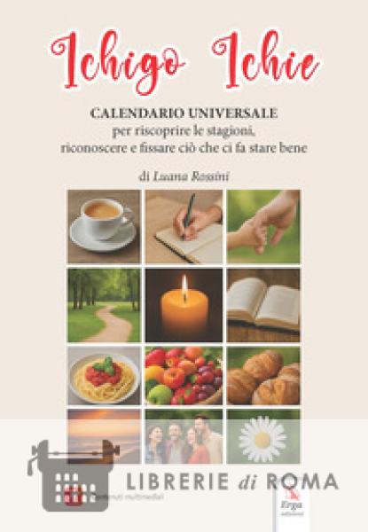 È un calendario unico che, mese dopo mese, spiega il termine e valore giapponese di Ichigo Ichie, "una volta, un incontro", nato con la cerimonia del thè. Le pagine, che ci ricordano il valore del "momento" in quanto irripetibile, sono corredate di esercizi e suggerimenti, su carta e multimediali. Seguendo il ritmo delle stagioni, sarete voi a interpretarli in chiave simbolica e personale. Gli spazi mensili diventeranno i vostri ricordi: gesti, paesaggi, situazioni, le persone che amate e voi stessi. Ogni mese diventa un piccolo spazio di consapevolezza dove conservare i ricordi legati ai vostri momenti. Rappresenta un percorso annuale di consapevolezza, un invito a ritrovare senso e bellezza nella nostra routine, nelle stagioni che cambiano, nei momenti che troppo spesso lasciamo scivolare via. Il calendario universale Ichigo Ichie ci insegna che ogni gesto può diventare unico, se vissuto con presenza: a volte basta solo fermarsi un attimo e accorgersene. Fatti dono di un personale Calendario Ichigo Ichie: basta fermarsi e così, attimo dopo attimo, riempirai gli spazi con la consapevolezza di vivere il presente con gratitudine. Il calendario non ha scadenza.