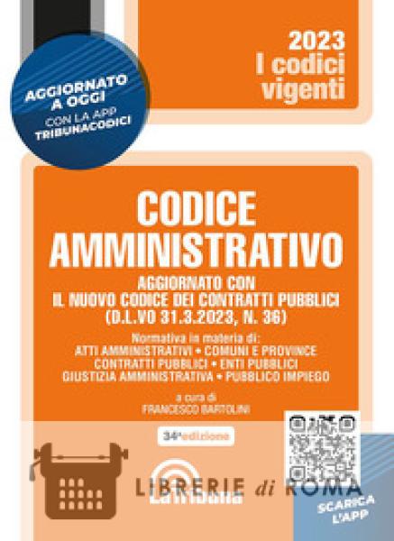 Questo volume, aggiornato con il nuovo Codice dei contratti pubblici (D.L.vo 31 marzo 2023, n. 36), contiene una raccolta sistematica dei provvedimenti fondamentali del diritto amministrativo e si indirizza a tutti coloro i quali hanno la necessità di avere un quadro generale ed aggiornato della più significativa normativa di settore. La selezione dei provvedimenti comprende materie fra le quali si segnalano: Amministrazione del patrimonio e contabilità generale dello Stato; Atti e procedimenti amministrativi; Avvocatura dello Stato; Comuni e province; Documenti, estratti e legalizzazione di firme; Edilizia e urbanistica; Elezioni amministrative; Elezioni politiche ed elettorato; Finanza locale; Giustizia amministrativa; Impiego pubblico; Opere pubbliche; Protezione civile; Regioni; Stato civile.