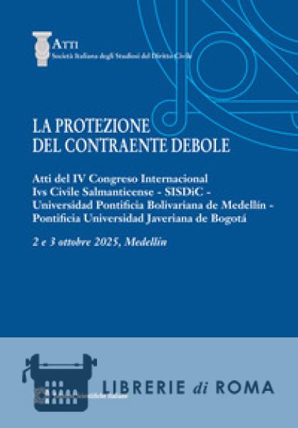 Il volume raccoglie gli atti del Congresso internazionale su «La protección del contratante debil» tenutosi a Medellín il 2 e 3 ottobre 2025, organizzato congiuntamente dalla Società italiana degli Studiosi del Diritto Civile, dall'Associazione Ivs Civile Salmanticense dell'Università di Salamanca, dall'Universidad Pontificia Bolivariana di Medellín e dalla Pontificia Universidad Javeriana di Bogotá. La consapevolezza che la nozione di debolezza contrattuale debba essere valutata - in virtú della sua natura necessariamente relativa - alla luce dell'effettiva asimmetria tra i contraenti impone, dinnanzi alla complessità delle nuove realtà socio-economiche, un'attenta analisi ed interpretazione delle normative esistenti nell'ottica della tutela del contraente debole in generale. Muovendo da tale presupposto, autorevoli giuristi e giovani studiosi analizzano il variegato panorama normativo in materia di protezione del contraente debole, offrendo delle riflessioni vòlte a contribuire alla costruzione di un diritto che sia in grado di garantire adeguata protezione a chi versi in una effettiva condizione di debolezza contrattuale.