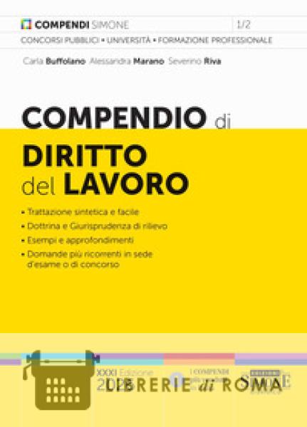Il Compendio di Diritto del lavoro costituisce uno strumento di studio indispensabile per chi intende preparare un esame universitario o un concorso pubblico, nonché sostenere l'esame per consulente del lavoro. Questa XXXI edizione del Compendio di Diritto del lavoro, già profondamente rinnovata nella struttura, nella grafica e nel modo in cui sono trattati gli argomenti, offre un quadro completo, seppur di sintesi, della materia. Il linguaggio è semplice e immediato e gli istituti fondamentali sono esaminati a partire dalla loro definizione, per individuare subito il primo dato necessario per proseguire lo studio. Nell'esposizione di ciascun argomento sono stati utilizzati tre elementi didattici, con diversi corpi di stampa e con apposite icone: in tal modo, sono evidenziati gli approfondimenti, per chi intende esaminare e comprendere maggiormente un argomento; gli esempi, che consentono di chiarire un concetto; le differenze, per definire i tratti caratteristici di un istituto in rapporto con altri simili. Per agevolare uno studio su più livelli sono riassunti, in appositi box con fondino, gli orientamenti più rilevanti di dottrina e giurisprudenza. In chiusura di ogni capitolo, infine, sono riportate schede di sintesi per un rapido ripasso, nonché le domande di esame o di concorso più ricorrenti, in modo da verificare il livello di preparazione raggiunto. Come sempre nei Compendi Simone un occhio attento è riservato alle tematiche di stretta attualità e alle più recenti novità legislative.