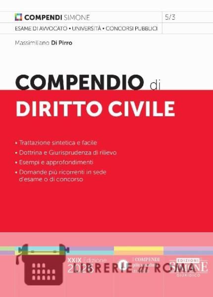 Anche questa XXIX edizione del Compendio di Diritto Civile presenta l'originale struttura e impianto grafico che caratterizzano i nuovi Compendi Simone. Il linguaggio utilizzato è semplice e immediato e gli istituti fondamentali della disciplina sono esaminati a partire dalla loro definizione, al fine di individuare subito il primo dato indispensabile per proseguire lo studio. Nell'esposizione degli argomenti sono stati utilizzati tre elementi didattici, messi in evidenza con diversi corpi di stampa e con apposite icone. In tal modo sono evidenziati gli approfondimenti, per chi intende esaminare e comprendere maggiormente un tema, gli esempi, che consentono di chiarire un concetto, e le differenze, per definire i tratti caratteristici di un istituto in rapporto con altri simili. Per garantire una conoscenza esaustiva della materia sono poi riassunti, in appositi box con fondino, gli orientamenti più rilevanti di dottrina e giurisprudenza (si segnalano le ultime sentenze dalla Corte costituzionale sull'adozione dei single, sul riconoscimento del figlio da parte della madre intenzionale, sul cognome dell'adottato nell'adozione in casi particolari). Là dove realmente necessario viene evidenziato, sempre in box, il riferimento normativo indispensabile per lo studio. Come sempre, nei Compendi Simone un occhio attento è riservato alle tematiche di stretta attualità e alle novità legislative, tra cui si segnala la L. 182/2025 in materia di assenza, morte presunta, restituzione dei beni di provenienza donativa. In chiusura di ogni capitolo, infine, sono riportate le domande più ricorrenti in sede di esame o di concorso, in modo da verificare immediatamente il livello di preparazione raggiunto. Per tali caratteristiche, il nuovo Compendio di Diritto Civile diventa uno strumento di studio indispensabile per chi intende sostenere l'esame di avvocato, un concorso pubblico o preparare un esame universitario.