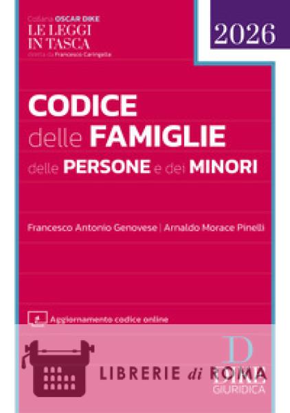 Il codice è Aggiornatissimo L. 19 gennaio 2026, n. 11, in tema di revisione dei servizi per i cittadini e le imprese all'estero: Modif. D.Lgs. 71/2011 D.L. 19 febbraio 2026, n. 19, recante disposizioni urgenti per l'attuazione del Piano nazionale di ripresa e resilienza (PNRR) e in materia di politiche di coesione D.L. 24 febbraio 2026, n. 23, cd. Decreto sicurezza 2026 contiene disposizioni in tema di: Aborto e procreazione assistita, Adozione, Anagrafe, Affidamento di minori, Cittadinanza italiana, Diritto di famiglia, Disposizioni del codice civile, Consenso informato e disposizioni anticipate di trattamento, Diritto internazionale privato, Divorzio e separazione, Immigrazione, Maternità e paternità, Matrimonio, Mediazione e negoziazione assistita, Minori, Pari opportunità, Persone con disabilità e legge sul "dopo di noi", Persone giuridiche, Processo civile, Regime patrimoniale della famiglia, Rettificazione di sesso, Rimpatrio di minori, Salute, Sottrazione di minori, Stato civile, Successioni, Tutela dei dati personali (c.d. privacy), Unioni civili e convivenze, Violenza contro le donne e violenza domestica costituisce una guida indispensabile per giuristi, magistrati, avvocati, funzionari e operatori dei servizi sociali, cancellieri e coloro che si occupano di minori, persona e famiglia.