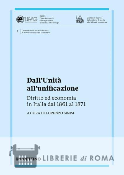 Il volume prende lo spunto da un centocinquantenario che fa riferimento, più che ad un anno ben preciso (il 1871), al decennio che lo precede, un periodo cruciale nella storia del nostro paese segnato da profonde trasformazioni in ambito sia giuridico che economico. Raggiunta, nel giro di un biennio e fortunosamente dopo secoli di divisioni e dominazioni straniere, l'unità politica, il nuovo Stato nazionale dovette affrontare e risolvere, proprio nel primo decennio della sua esistenza, non pochi problemi, primo fra tutti quello di dare al paese una legislazione unitaria, un uniforme assetto amministrativo ed un'unica moneta. Su questo e su altri aspetti della difficile unificazione italiana sono intervenuti studiosi appartenenti a vari settori scientifici che, secondo una prospettiva interdisciplinare, con i loro contributi qui pubblicati dimostrano ancora una volta come la storia giuridica e la storia economica interagiscano efficacemente e costituiscano un mezzo imprescindibile per una più approfondita conoscenza dei principali snodi che hanno segnato il nostro passato condizionando anche il nostro presente.