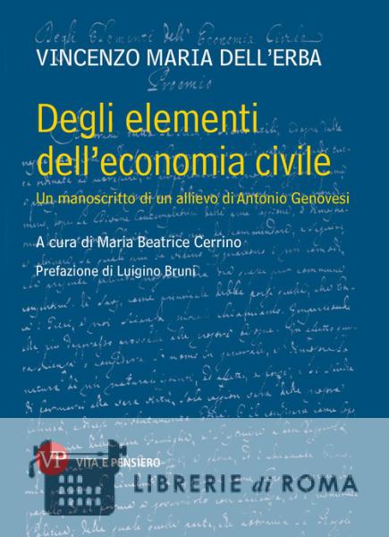 Il ritrovamento da parte di Augusto dell'Erba nella biblioteca di famiglia di un manoscritto in buono stato di conservazione, risalente agli anni 1759-60 e appartenente al suo antenato Vincenzo Maria dell'Erba, ha destato immediatamente interesse e desiderio di approfondirne il contenuto. Il presente volume è la trascrizione, analisi e annotazione di una dispensa, recante il titolo Degli elementi dell'Economia Civile, di uno studente di Genovesi che, come si usava in quel tempo, aveva composto il suo proprio libro di testo copiando accuratamente le lezioni che il professore dettava nella prima cattedra di Economia in Europa. Dell'Erba è vissuto tra il 1740 e il 1804 e dai dati biografici si deduce che abbia studiato Giurisprudenza a Napoli proprio nel periodo di datazione del documento. Da anni la Scuola di Economia Civile è impegnata nell'approfondimento della figura di Genovesi, della sua straordinaria attività di docente, della Scuola Napoletana nata attorno a lui. Finora si conosceva il testo dei suoi Elementi di Commercio pubblicati nel 2005 e datati 1758 e delle Lezioni di commercio osia di economia civile redatte e pubblicate tra il 1765 e il 1769, i due testi che si sono assunti come termine di confronto. Questo volume si situa in una fase intermedia dell'evoluzione del pensiero di Genovesi in materia economica e permette, attraverso il confronto testuale con le due edizioni citate, di coglierne sviluppo e definizione. Il testo, definito da Bruni nella Prefazione «l'anello mancante nella Cattedra Genovesiana», è particolarmente prezioso perché presenta una propria originalità e una buona quota di testi inediti e soprattutto è l'unica dispensa a nostra disposizione e permette di aggiungere elementi di novità al panorama degli studi sulla tradizione dell'economia civile.