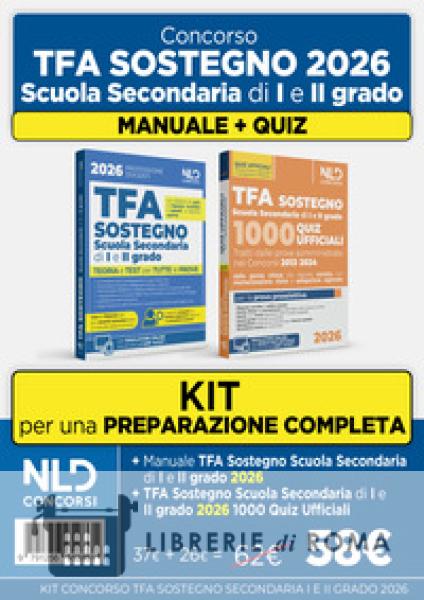 Il Kit Concorso TFA Sostegno 2026 - Scuola secondaria di I e II grado è pensato per offrire una preparazione completa ed efficace alle prove di accesso al Tirocinio Formativo Attivo per il sostegno. Il kit unisce studio teorico ed esercitazione pratica, consentendo ai candidati di acquisire una solida conoscenza delle materie richieste e di allenarsi sui quesiti tipici delle prove preselettive. Il pacchetto comprende: il Manuale TFA Sostegno 2026, con una trattazione aggiornata e schematica delle principali materie oggetto della selezione: normativa del sistema educativo, legislazione dell'inclusione, psicopedagogia e apprendimento, metodologie didattiche e strumenti per l'inclusione; il volume 1000 quiz ufficiali, ideale per esercitarsi sui test a risposta multipla e sviluppare rapidità e precisione nella risoluzione delle domande.