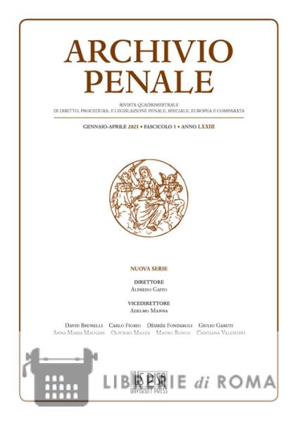 Archivio penale. Rivista quadrimestrale di diritto, procedura e legislazione penale, speciale, europea e comparata