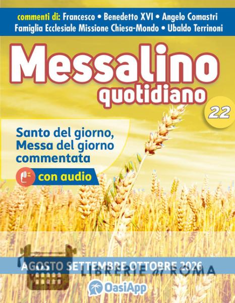 In questo Messalino Quotidiano trovi il Santo del giorno, la Messa del giorno commentata con audio, alcune piccole preghiere e invocazioni all'interno del testo, le preghiere del buon cristiano, il Santo Rosario e le preghiere del periodo.