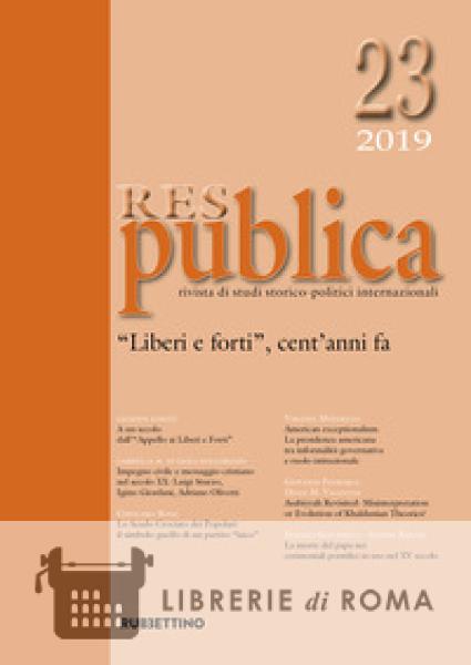 Giuseppe Ignesti, A un secolo dall'"Appello ai Liberi e Forti" Gabriella M. Di Paola Dollorenzo, Impegno civile e messaggio cristiano nel secolo XX: Luigi Sturzo, Igino Giordani, Adriano Olivetti Girolamo Rossi, Lo Scudo Crociato dei Popolari: il simbolo guelfo di un partito "laico" Virginia Mondello, American exceptionalism. La presidenza americana tra informalità governativa e ruolo istituzionale GioVanni Patriarca - Diana M. Valentini, Asabiyyah Revisited: Misinterpretation or Evolution of Khaldunian Theories? Stefano Sanchirico - Simone Raponi La morte del papa nei cerimoniali pontifici in uso nel XV secolo.