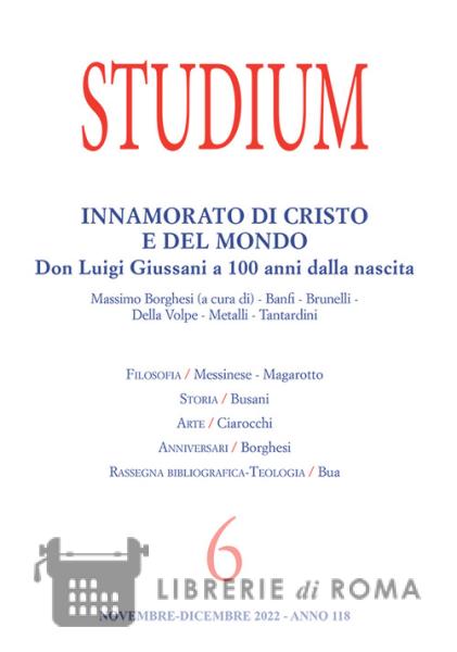Francesco Bonini, L'ermeneutica dialettica di Benedetto XVI SEZIONE MONOGRAFICA Innamorato di Cristo e del mondo Don Luigi Giussani a 100 anni dalla nascita A cura di Massimo Borghesi Massimo Borghesi, Introduzione Don Giussani nella biografia di Alberto Savorana Alessandro Banfi, Don Giussani e Il Sabato. Ricordi di un ex direttore Lucio Brunelli, Giussani come l'ho conosciuto io Monica Della Volpe, Da CL al monastero trappista di Vitorchiano. Il mio incontro con don Giussani Alver Metalli, La terra del futuro. Don Giussani in America Latina (1973-1984) Don Giacomo Tantardini, Ricordando don Luigi Giussani. Memoria di incontri Filosofia Leonardo Messinese, Una discussione con Carlo Rovelli su scienza e filosofia Luigi Magarotto, Il concetto di verità nella povest' Kotlovan di Andrej Platonov Storia Marta Busani, Pio XII e il laicato internazionale cattolico Arte Valerio Ciarocchi, Musica e liturgia. Il fondamento teologico e le ricadute operative di questo rapporto Anniversari Massimo Borghesi, Dio nella letteratura. Ricordo di Charles Moeller Rassegna bibliografica-teologia Pasquale Bua, La riforma sinodale della Chiesa interpella la teologia