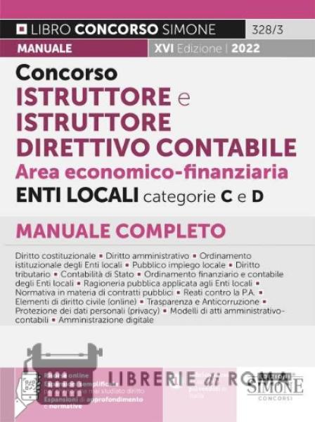 Il manuale "Concorso istruttore e istruttore direttivo contabile" è diretto a coloro che intendono partecipare ai concorsi banditi dagli Enti locali per le categorie C e D dell'area economico-finanziaria. Il testo propone la trattazione delle materie che sono generalmente richieste nei bandi, ovvero: diritto costituzionale; diritto amministrativo; ordinamento istituzionale degli Enti locali; pubblico impiego locale; reati contro la P.A.; diritto tributario; contabilità di Stato; ragioneria pubblica applicata agli Enti locali; ordinamento finanziario e contabile degli Enti locali; normativa in materia di contratti pubblici; diritto civile (online). In questa XVI Edizione ciascuna materia è stata rivisitata alla luce delle modifiche introdotte dai piu recenti provvedimenti normativi, tra i quali si segnalano: il D.L. 17/2022 e il D.L. 21/2022, che contengono disposizioni per contrastare gli effetti economici derivanti dall'aumento eccezionale dei prezzi dei materiali da costruzione, dei carburanti e dei prodotti energetici verificatosi nei primi mesi del 2022; il D.L. 4/2022 (cd. decreto sostegni ter), conv. in L. 25/2022, che ha modificato, tra gli altri, alcuni articoli del codice penale in materia di reati contro la pubblica amministrazione; la L. 234/2021 (legge di bilancio 2022); il D.L. 228/2021 (cd. decreto milleproroghe), conv. in L. 15/2022; il D.L. 77/2021 (cd. decreto semplificazioni 2021), conv. in L. 108/2021, che ha, tra l'altro, introdotto modifiche in materia di procedimento amministrativo e di contratti pubblici volte a favorire l'attuazione del Piano nazionale di ripresa e resilienza (PNRR); il D.M. 1-9-2021 e il D.M. 12-10-2021, che hanno modificato alcuni degli allegati al D.Lgs. 118/2011 in materia di armonizzazione dei sistemi contabili e degli schemi di bilancio delle Regioni e degli Enti locali. Sono a disposizione dei lettori, inoltre, un'Appendice dedicata alla redazione degli atti degli Enti locali, contenente esempi pratici, e numerose risorse online, tra cui: approfondimenti; normativa d'interesse; espansioni semplificate con i concetti fondamentali di ogni disciplina, particolarmente utili per coloro che non hanno mai studiato diritto.