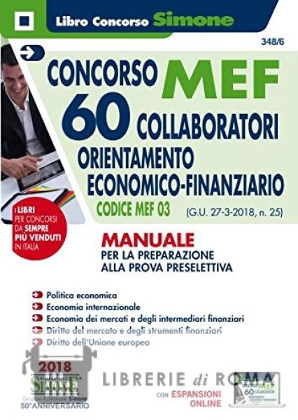 Librerie di Roma | Concorso MEF. 60 collaboratori orientamento economico-finanziario. Codice MEF 03 (G.U. 27-3-2018, n. 25). Manuale per la preparazione alla prova preselettiva