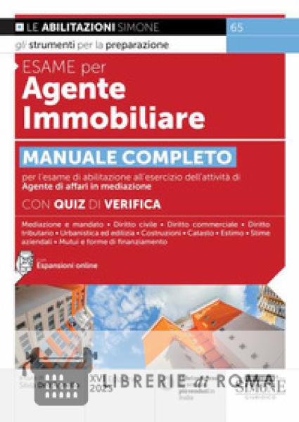 Il manuale esame per agente immobiliare 2023 è indirizzato a coloro che devono affrontare la prova d'idoneità per l'esercizio dell'attività di agente di affari in mediazione (sezione agenti immobiliari e mediatori a titolo oneroso). Accedere a questa professione richiede conoscenze specifiche che afferiscono a diversi campi connessi al settore immobiliare e il superamento di un esame, scritto e orale, presso la Camera di Commercio di residenza. Il testo, che ricalca il programma ministeriale, tiene conto anche dei quesiti contenuti nelle banche dati ufficiali delle principali Camere di Commercio. Il manuale è articolato in tre parti: la prima, dedicata alle materie giuridiche, analizza la disciplina della professione di mediatore, gli istituti di diritto civile, diritto commerciale, diritto tributario, pubblicità e trascrizioni; la seconda esamina gli aspetti tecnico-immobiliari quali catasto, diritto urbanistico ed edilizia, estimo, stime aziendali, stime dei fabbricati e delle aree edificabili, e quelli tecnico-finanziari quali mutui e forme di finanziamento con particolare riferimento agli immobili; la terza propone numerosi quiz su discipline giuridiche e tecniche, per fornire all'aspirante mediatore la possibilità di esercitarsi attraverso la simulazione della prova scritta dell'esame camerale. Questa edizione è aggiornata alla legislazione più recente ed è arricchita da espansioni online di approfondimento e con la normativa d'interesse. Il manuale, oltre ad essere indicato per accompagnare i corsisti durante tutte le fasi di preparazione dell'esame finale di abilitazione, costituisce un valido supporto anche per l'esercizio dell'attività professionale.