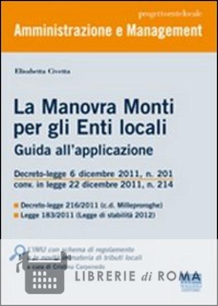 Il presente manuale intende offrire agli operatori di Comuni, Province e Regioni una guida pratica per l'applicazione di tutte le disposizioni della Manovra Monti che influenzano la gestione finanziaria e operativa degli Enti locali, più importante fra tutte l'introduzione anticipata dei tributi IMU e RES previsti dal federalismo fiscale, a cui è dedicato un focus. A queste si sono aggiunte quelle più recenti contenute nel decreto-legge 29 dicembre 2011, n. 216, il cosiddetto "decreto milleproroghe", che ha differito tra gli altri il termine entro cui Equitalia dovrà cessare di effettuare le attività di accertamento, liquidazione e riscossione delle entrate dei Comuni e delle società da essi partecipate. Il susseguirsi ravvicinato di provvedimenti finanziari tra l'estate e la fine del 2011 - la manovra correttiva (il decreto-legge 98/2011 convertito in legge 111/2011), la manovra bis (il decreto-legge 138/2011 convertito in legge 148/2011) e la legge di stabilità 2012 (legge 183/ 2011) - ha reso necessaria una lettura riepilogativa e congiunta della manovra, in grado di "tirare le fila" dei cambiamenti intervenuti fino ad oggi. Il manuale illustra le principali disposizioni di interesse per gli enti locali contenute nelle normative sopra riportate.