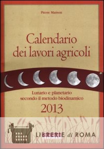 Ecco l'edizione del Calendario dei lavori agricoli 2013, pressoché invariato nella struttura e impaginazione. In passato, gli agricoltori sapevano molto bene con quale Luna seminare, conoscevano i mesi più indicati per tagliare la legna e i giorni propizi per travasare il vino. Queste conoscenze, che con l'avvento dell'agricoltura industrializzata rischiavano di essere perdute per sempre, sono state sperimentate e aggiornate dal movimento biodinamico, in modo da stabilire con una certa esattezza i giorni più adatti per le diverse operazioni colturali. Il calendario raccoglie queste osservazioni per metterle a disposizione di tutti coloro che, per diletto o professione, sono interessati a coltivare sfruttando al meglio le influenze della Luna e degli altri astri. Pur essendo un punto di riferimento insostituibile per chi pratica l'agricoltura biodinamica, questo calendario può essere utilizzato con facilità da chiunque: per ogni giorno dell'anno sono riportate le fasi lunari, i pianeti attraversati, i nodi lunari, le eclissi e tutti gli altri fenomeni astronomici utili per la coltivazione. Tali indicazioni derivano, oltre che dalle ricerche di Lily Kolisko, Alex Podolinsky, Harmut Spiess e Maria Thun sulle correlazioni tra agricoltura e influenze astrali, dalle esperienze e osservazioni dell'autore e di numerosi agricoltori e viticoltori biodinamici europei, raccolte e rese pratiche nel calendario anche grazie alla revisione di Adriano Zago, che ha adattato il testo alla realtà agricola italiana.