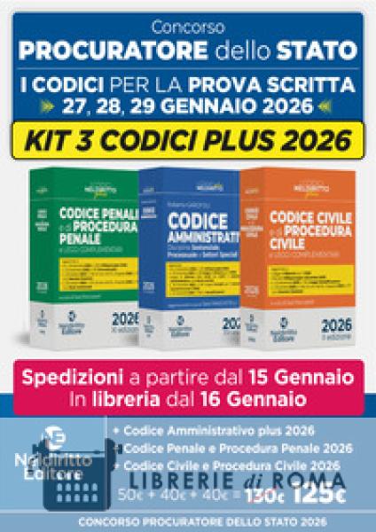 Librerie di Roma | Concorso Procuratore dello Stato: kit codici normativi penale e di procedura penale, amministrativo e civile e di procedura civile 2026 per la prova scritta