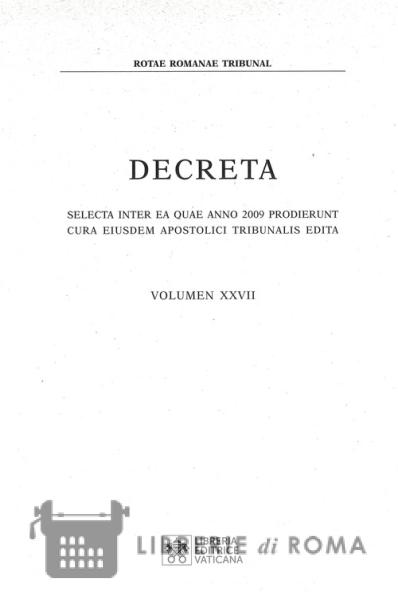 Nell'ambito della collana Decreta selecta, il cui inizio risale al 1983 ? anno di promulgazione del nuovo Codice di Diritto Canonico ? la Libreria Editrice Vaticana ha promosso la pubblicazione del volume XXVII relativo all'anno 2009. Il testo raccoglie la giurisprudenza di rito, ovvero una selezione dei decreti emessi nelle cause pregiudiziali ed incidentali, di grande interesse per gli studiosi del diritto e gli operatori del Foro canonico, giacché toccano temi fondamentali della tutela giurisdizionale dei diritti quali - ad esempio - la competenza del giudice, la legittimazione delle parti, l'impugnazione e l'esecuzione delle decisioni giudiziali.