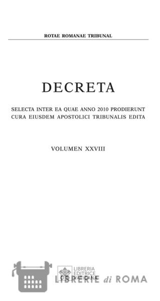 Nell'ambito della collana Decreta selecta, il cui inizio risale al 1983 ? anno di promulgazione del nuovo Codice di Diritto Canonico ? la Libreria Editrice Vaticana ha promosso la pubblicazione del volume XXVIII relativo all'anno 2010. Il testo raccoglie la giurisprudenza di rito, ovvero una selezione dei decreti emessi nelle cause pregiudiziali ed incidentali, di grande interesse per gli studiosi del diritto e gli operatori del Foro canonico, giacché toccano temi fondamentali della tutela giurisdizionale dei diritti quali - ad esempio - la competenza del giudice, la legittimazione delle parti, l'impugnazione e l'esecuzione delle decisioni giudiziali.