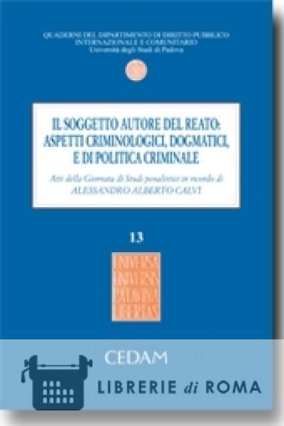 In questo volume sono raccolti gli Atti della giornata di studi penalistici in ricordo di Alessandro Alberto Calvi dal titolo "Il soggetto autore del reato: aspetti criminologici, dogmatici e di politica criminale", che si è tenuta il 18 novembre 2011 nell'Aula Magna "Galileo Galilei" dell'Università di Padova, Palazzo del Bo'. Il convegno è stato organizzato dall'Università patavina e dal suo Dipartimento di diritto pubblico e internazionale, con la collaborazione dell'Ordine degli Avvocati e della Camera Penale di Padova