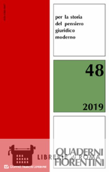 Il quarantottesimo numero dei Quaderni fiorentini propone nelle sue abituali sezioni saggi molto diversi fra loro, tutti mossi però dalla comune consapevolezza dell'intrinseca storicità della dimensione giuridica, dal comune obiettivo di offrire una storia del diritto 'autonoma'¿ e al tempo stesso caratterizzata dal venir meno di miopi rivendicazioni di insularità. Dialogo con altri specialismi, caduta dei confini, ibridazione dei territori sono oggi componenti essenziali di una storia del diritto che (come mostra António Hespanha nel saggio che apre il Quaderno) non si presenta più come «l'ultima roccaforte di una storia incentrata sullo Stato e sulla nazione» ma ambisce a porsi come strumento di analisi della complessa realtà plurale che caratterizza il nostro presente.