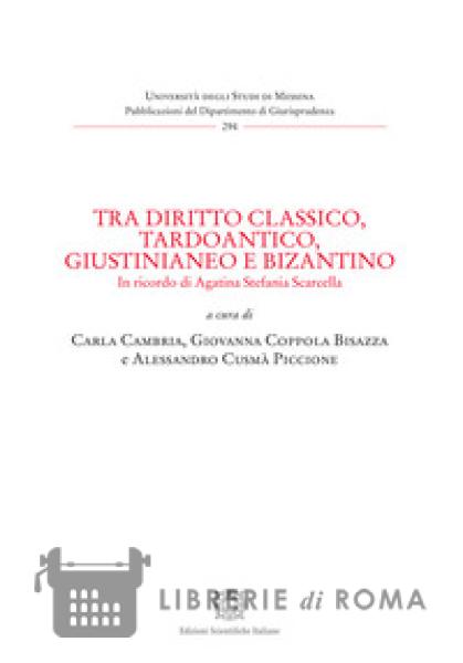 Il presente volume raccoglie i Contributi e gli Interventi che si sono susseguiti durante il Convegno organizzato in ricordo della professoressa Agatina Stefania Scarcella tenutosi presso il Dipartimento di Giurisprudenza dell'Università degli Studi di Messina l'8 gennaio 2024, e la cui intitolazione "Tra diritto classico, tardoantico, giustinianeo e bizantino" intende ripercorrere i diversi ambiti del diritto romano oggetto del lavoro scientifico della Scomparsa.