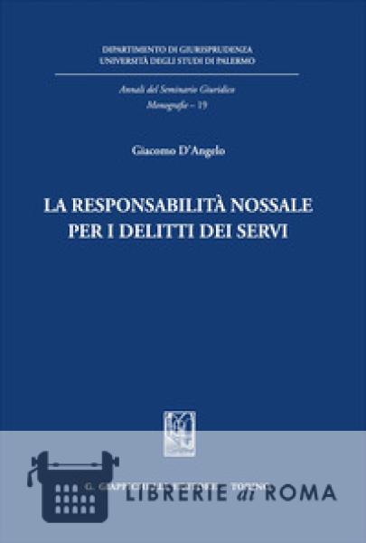 Il regime classico della responsabilità nossale per i delitti dei servi può essere illustrato senza difficoltà nelle sue linee fondamentali: se un servo commetteva un delitto ai danni di estranei senza il consenso dell'avente potestà (solitamente il dominus), l'offeso poteva esercitare contro quest'ultimo l'azione nossale del caso, con la facoltà del convenuto di liberarsi da ogni responsabilità, a sua scelta, dando a nossa il servo o pagando la pena prevista per il delitto da questi commesso. Oltre questa semplice descrizione, però, le cose si complicano non appena si passi al tentativo di un'analisi più penetrante del fenomeno e si pongano a tal fine le questioni tradizionalmente più dibattute in materia: quali erano la natura delle azioni nossali e il fondamento della responsabilità che con esse si faceva valere? Quale effetto produceva il delitto del servo nei confronti del delinquente medesimo e nella sfera giuridica del suo dominus? E come ha avuto origine il sistema classico della responsabilità nossale? A tali interrogativi, rilevanti sia sul piano dogmatico sia sul piano storico, cerca di offrire una risposta in una monografia di alto profilo specialistico, la cui trama conduce il lettore fino ai primordi della nossalità romana.