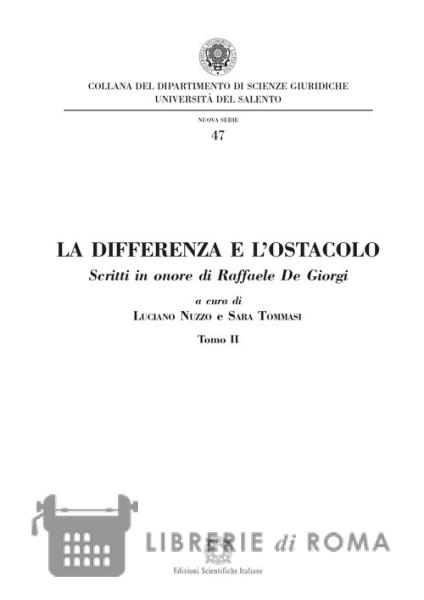 Librerie di Roma | La differenza e l'ostacolo. Scritti in onore di Raffaele De Giorgi