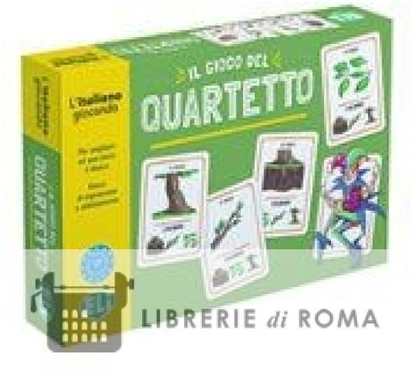Obiettivi del gioco L'obiettivo del gioco del quartetto è creare combinazioni di quattro carte dello stesso gruppo, di appartenenza, oppure di tre, sempre dello stesso gruppo, più una carta jolly. Il gioco si rivolge a chi ha un livello di conoscenza linguistica A2 (QCER) e ha lo scopo di stimolare il ragionamento logico e di arricchire il lessico di diverse aree semantiche. Grazie alla presenza delle immagini, l'apprendimento e la memorizzazione dei nuovi termini avvengono in maniera divertente e spontanea. La struttura del gioco, semplice e universalmente conosciuta, lo rende intuitivo e facile da utilizzare sin da subito. Contenuto Il gioco è composto da 132 carte di cui 128 carte suddivise in 32 quartetti. Ogni carta riporta il nome e l'immagine di un componente del quartetto, il nome del quartetto e l'illustrazione degli altri tre componenti del quartetto. 4 carte Jolly. 1 guida con le istruzioni e i suggerimenti.