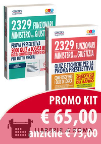 La Commissione Ripam, in data 26 luglio 2019, ha pubblicato il bando di concorso, per titoli ed esami, per 2329 posti di funzionario da inserire nei ruoli del personale del Ministero della Giustizia. Il Kit è composto da: - quiz per la preparazione al concorso per 2329 funzionari del Ministero della Giustizia - 2329 funzionari del Ministero della Giustizia- 5000 quiz di logica RIPAM per la prova preselettiva.