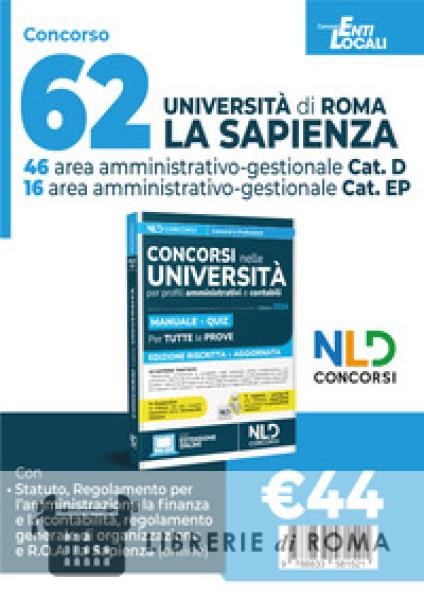 Librerie di Roma | 62 posti Università «La Sapienza» di Roma. Concorso area amministrativo-gestionale. Profili D e EP. Manuale + Quiz 2024