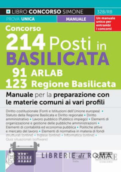 Librerie di Roma | Concorsi 214 Posti in Basilicata 91 ARLAB 123 Regione Basilicata. Con Tabella di corrispondenza con gli argomenti da studiare. Manuale per la preparazione con le materie comuni ai