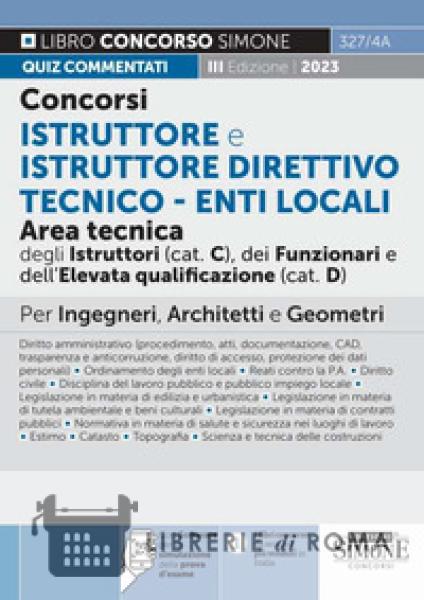 Librerie di Roma | Concorsi istruttore e istruttore direttivo tecnico. Enti locali area tecnica degli istruttori (cat.C), dei funzionari e dell'elevata qualificazione (cat.D). Quiz commentati. Per in