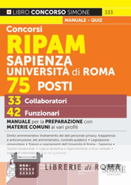 Librerie di Roma | Concorsi RIPAM Sapienza Università di Roma 75 posti, 33 collaboratori, 42 funzionari. Manuale per la preparazione con materie comuni ai vari profili