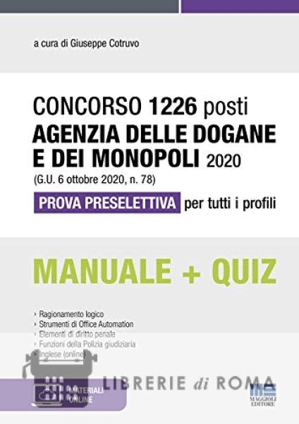 Librerie di Roma | Concorso 1226 posti Agenzia delle Dogane e dei Monopoli 2020 (G.U. 6 ottobre 2020, n. 78). Prova preselettiva per tutti i profili