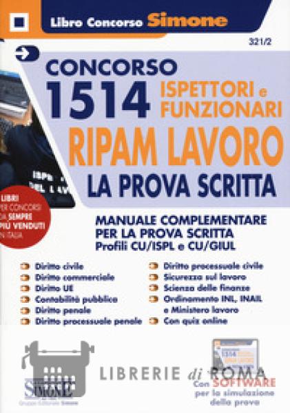 Librerie di Roma | Concorso 1514 ispettori e funzionari RIPAM Lavoro. La prova scritta. Manuale complementare per la prova scritta. Profili CU/ISPL e CU/GIUL