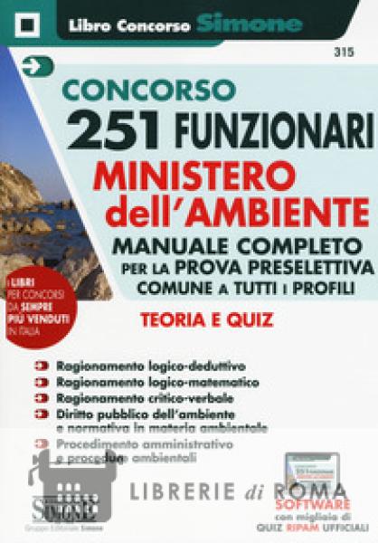 Sulla Gazzetta Ufficiale n. 63 del 9 agosto 2019 è stato pubblicato il bando, a cura della Commissione per l'attuazione del progetto RIPAM, per il reclutamento di 251 funzionari, distinti in vari profili, da assumere a tempo indeterminato nel Ministero dell'ambiente e della tutela del territorio e del mare (MATTM), presso la sede unica di Roma, che verranno inquadrati nell'Area III, posizione economica F1. I posti messi a concorso sono stati suddivisi tra i seguenti profili: 55 unità nel settore dell'ingegneria per l'ambiente e il territorio, energetica e nucleare, gestionale, civile (codice ING/MATTM); 35 unità nel settore dell'economia e fiscalità ambientale (codice ECO/MATTM); 25 unità nel settore della pianificazione territoriale, urbanistica e ambientale, e nell'architettura del paesaggio (codice ARC/MATTM); 22 unità nel settore delle scienze biologiche e biologia marina (codice BIO/MATTM); 11 unità nel settore delle scienze chimiche (codice CHI/MATTM); 30 unità nel settore delle scienze geologiche e geofisiche (codice GEO/MATTM); 60 unità nel settore delle scienze naturali, scienze ambientali, agrarie e forestali (codice NAT/MATTM); 13 unità nel settore delle scienze statistiche, dell'informatica, della società dell'informazione (codice INF/MATTM). Questo manuale si propone, in particolare, come indispensabile sussidio di preparazione alla prova preselettiva comune a tutti i profili (per la quale non è prevista la pubblicazione di una banca-dati ufficiale), che consisterà in un test, da risolvere in 60 minuti, composto da 60 quesiti a risposta multipla, di cui 40 attitudinali per la verifica della capacità logico-deduttiva, di ragionamento logico-matematico e critico-verbale, e 20 per verificare la conoscenza del diritto pubblico dell'ambiente, con particolare riferimento alla normativa in materia ambientale e al procedimento amministrativo. Pertanto, aderendo al bando, il volume affronta la trattazione dei seguenti argomenti: Ragionamento logico-deduttivo, con schede esplicative e quiz commentati su deduzioni semplici, sillogismi, negazioni, condizioni necessarie e sufficienti, relazioni di parentela, ordine e grandezza etc.; Ragionamento logico-matematico, con schede esplicative e quiz commentati su serie numeriche, problem solving (calcolo delle percentuali e delle probabilità, problemi velocita/distanza/tempo, medie aritmetiche, criteri di divisibilità, interesse/ricavo/sconto etc.), ragionamento critico-numerico etc.; Ragionamento critico-verbale, ossia una selezione di test che vertono sulla comprensione brani, anche in questo caso con soluzioni commentate e con una parte introduttiva riguardante le tecniche di risoluzione più efficaci; Diritto pubblico dell'ambiente e normativa in materia ambientale (teoria + test di verifica); Il procedimento amministrativo e le procedure ambientali (teoria + test di verifica). La maggior parte dei quesiti proposti nel volume è tratta dalle più recenti banche-dati ufficiali RIPAM, per consentire al lettore di cimentarsi con le tipologie di quiz che effettivamente verranno somministrate in sede concorsuale. A completamento dell'opera, un software (accessibile tramite il QR-Code presente nel libro) comprendente sia tutti i quesiti contenuti nel manuale, sia migliaia di altri quiz (ufficiali e non) per infinite esercitazioni e simulazioni della prova d'esame.