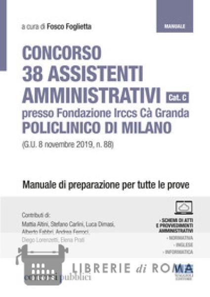 Il manuale è uno strumento di supporto per la preparazione a tutte le prove concorsuali previste dal bando per 38 assistenti (Cat. C) da assumere presso la Fondazione Ca' Granda dell'Ospedale Maggiore Policlinico di Milano (G.U. 8 novembre 2019, n. 88). Il bando prevede le seguenti prove per selezionare i candidati: prova preselettiva (in caso di alto numero di candidati): quiz a risposta multipla sulle materie della prova scritta; prova scritta: quesiti a risposta sintetica o multipla o svolgimento di un tema sulle materie indicate nel bando; prova pratica: predisposizione di atti amministrativi o esecuzione di tecniche specifiche; prova orale: colloquio sulle materie del bando. Il volume inizia con una riflessione sul diritto alla salute per poi passare all'analisi dell'evoluzione del Sistema Sanitario Nazionale prima e dopo la legge n. 833/1978. La disamina prosegue focalizzando l'attenzione sul sistema di finanziamento, il rapporto fra Stato e Regioni e il ruolo degli enti locali. Il manuale analizza i principali aspetti del SSN: la governance, l'organizzazione, l'integrazione sociosanitaria e la committenza e prende in esame il ruolo del cittadino, il welfare di comunità, i livelli essenziali di assistenza e la sanità integrativa. Segue un'attenta disamina sull'evoluzione dei sistemi informativi e informatici, della ricerca scientifica, del sistema dei controlli, del rapporto di lavoro all'interno del SSN e della contabilità e dei bilanci. I temi del contrasto alla corruzione, della trasparenza amministrativa, dei contratti e degli appalti sono al centro degli ultimi capitoli che si concludono con i profili generali delle discipline di base, diritto costituzionale e diritto amministrativo. Il manuale si conclude con una sezione di atti e provvedimenti amministrativi e una ricca rassegna dei testi di normativa e giurisprudenza più importanti per il settore. A cura di Fosco Foglietta.