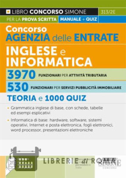 Librerie di Roma | Concorso agenzia delle entrate. Inglese e informatica 3970 funzionari per attività tributaria. 530 funzionari per servizi pubblicità immobiliare. Teoria e 1000 quiz
