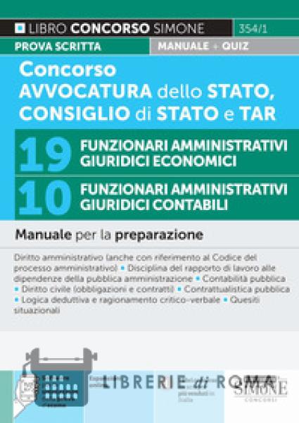Concorso Avvocatura dello Stato, Consiglio di Stato e TAR. 19 funzionari amministrativi giuridici economici. 10 funzionari amministrativi giuridici contabili. Manuale per la prepar