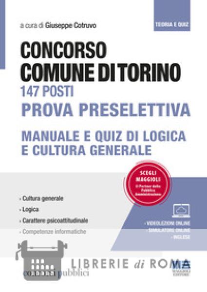 Librerie di Roma | Concorso Comune di Torino 147 posti. Prova preselettiva. Manuale e quiz di logica e cultura generale