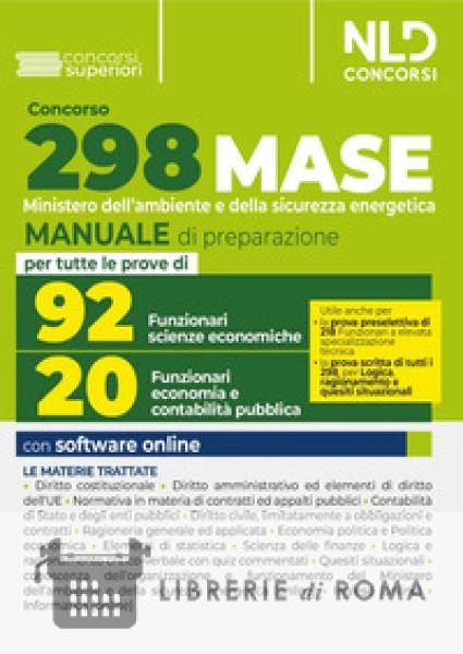 Librerie di Roma | Concorso Ministero Ambiente 2023 (MASE) 298 funzionari. Manuale completo per la prova preselettiva e scritta per 20 funzionari dell'economia e contabilità pubblica e 92 funzionari