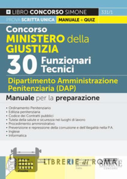 Librerie di Roma | Concorso Ministero della Giustizia. 30 funzionari tecnici. Dipartimento Amministrazione Penitenziaria (DAP). Manuale per la preparazione