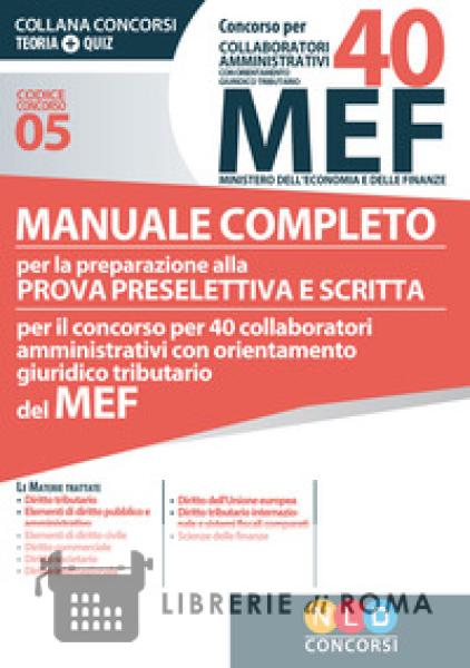Librerie di Roma | Concorso per 40 collaboratori amministrativi con orientamento giuridico-tributario MEF. Manuale completo per la preparazione alla prova preselettiva e scritta per il concorso per 4